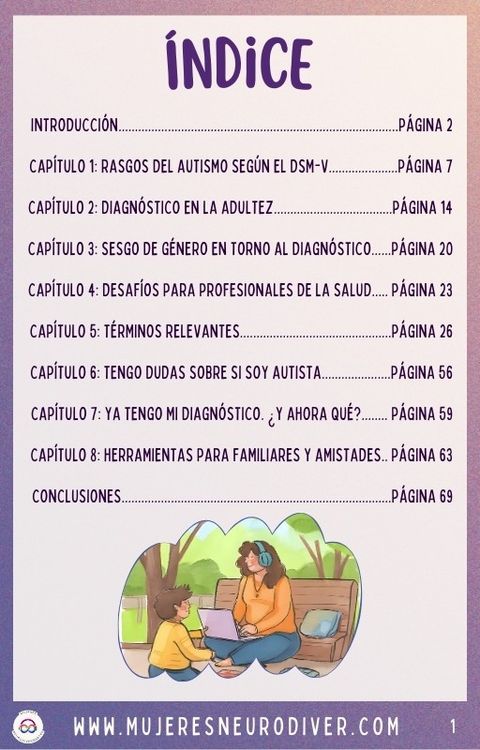 Esta guía está pensada para personas autistas con diagnóstico tardío, o en proceso de confirmación, que necesitan información clara, validante y no patologizante. Aborda aspectos frecuentes del diagnóstico en la adultez como el masking, el agotamiento, la identidad, la regulación emocional, la sensibilidad sensorial y el impacto subjetivo de llegar “tarde” a una explicación que podría haber aliviado antes.